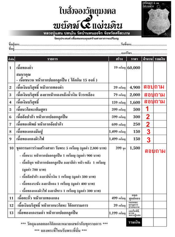 วัตถุมงคลตอกโค๊ดและหมายเลขทุกรายการ