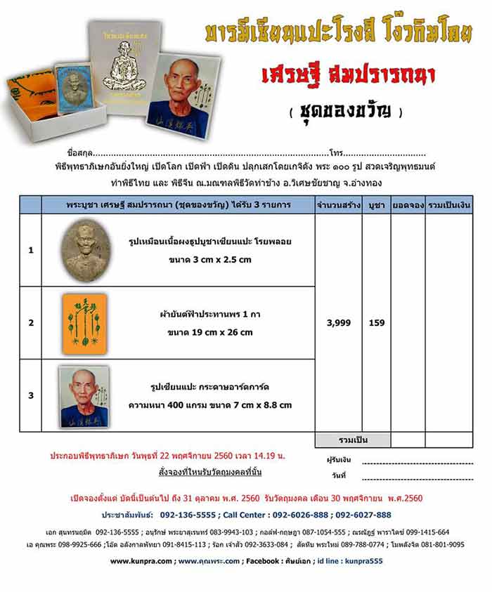 กำหนดรับพระตั้งแต่วันที่ 30 พ.ย.2560 ค่ะ