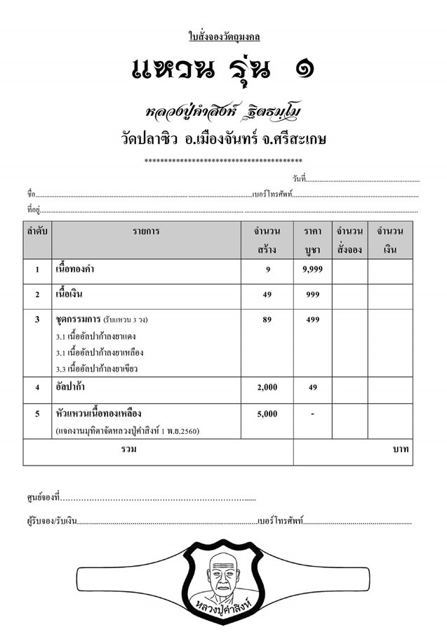 *** เปิดจอง// แหวน รุ่น ๑ หลวงปู่คำสิงห์ ฐิตธมฺโม วัดปลาซิว อ.เมืองจันทร์ จ.ศรีสะเกษ