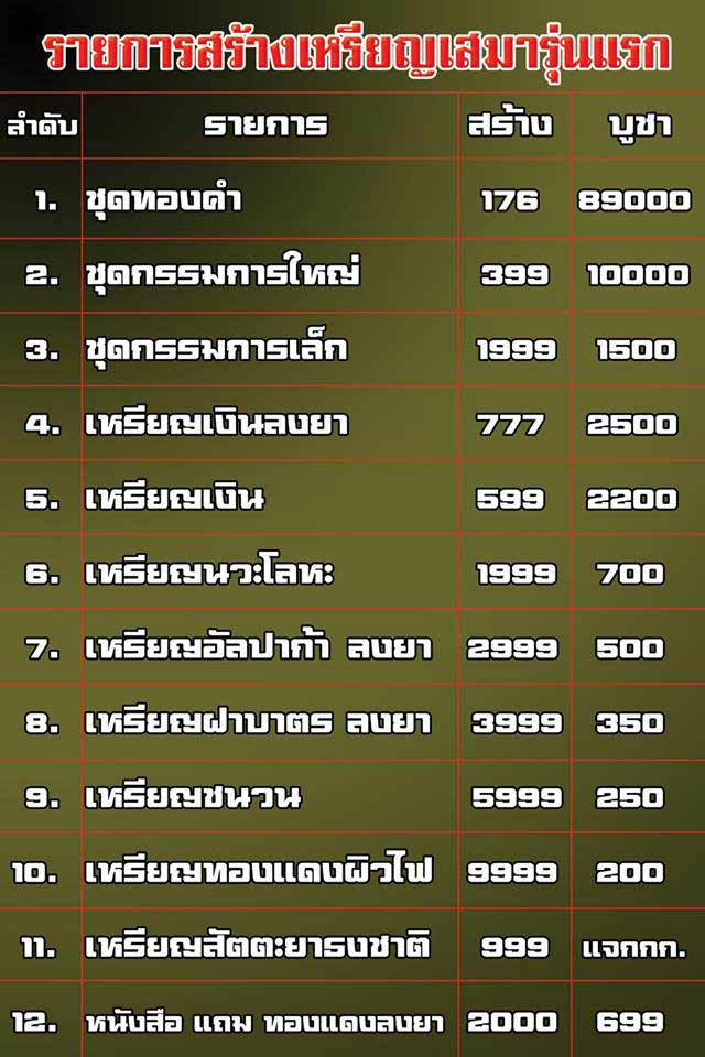 1. เนื้อฝาบาตรลงยา มี 5 เหรียญ ราคาเหรียญละ 900 บาท