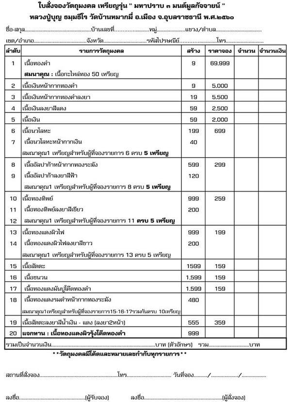 สนใจรวมทำบุญแจ้งรายการและจำนวนได้เลยครับผม