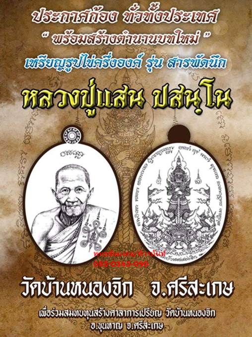 เปิดจองวัตถุมงคล รุ่นสารพัดนึก บารมี หลวงปู่แสน ปสนโน วัดบ้านหนองจิก จ.ศรีสะเกษ ราคาวัดค่ะ