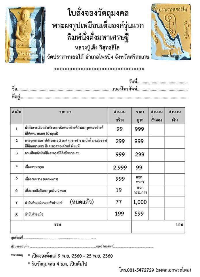 *** กำหนดรับวัตถุมงคล 4 ธันวาคม 2560 เป็นต้นไป