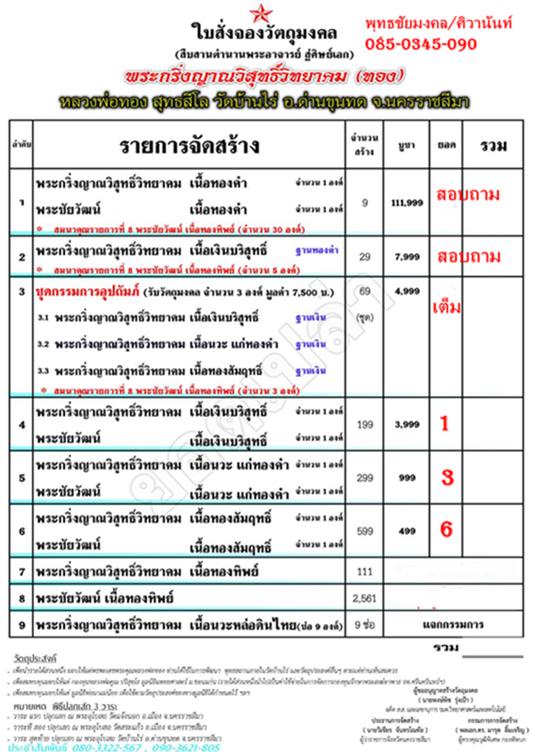 เปิดจองพระกริ่งญาณวิสุทธิ์วิทยาคม หลวงพ่อทอง สุทฺธสีโล วัดบ้านไร่ จ.นครราชสีมา