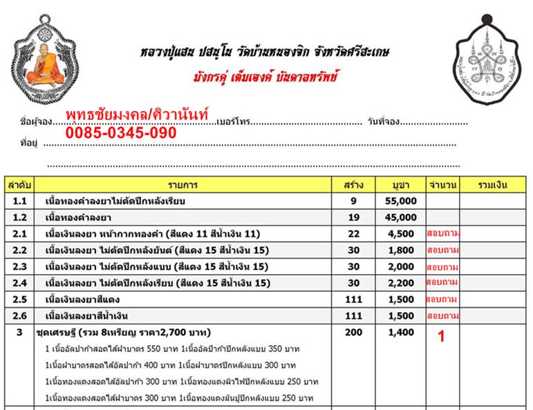 ***วัตถุมงคลตอกโค๊ดและหมายเลขกำกับทุกรายการ