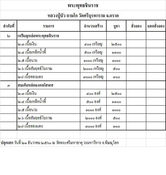 รุ่นที่ระฤกที่ได้มามนัสการ ณ เมืองพิศณุโลก ๒๕๖๐
