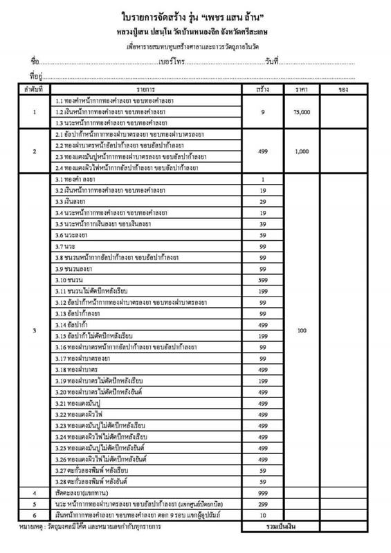 รายการ 2.ชุดกรรมการ(รับพระ 4 เหรียญ) ราคาจอง 1,000.-บาท มียอด = 6 ชุด