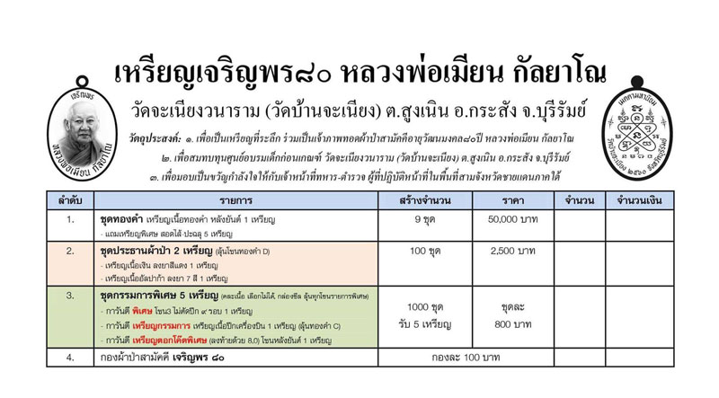 *** เปิดจอง// เหรียญเจริญพร ๘๐ หลวงพ่อเมียน กัลยาโณ วัดจะเนียงวนาราม อ.กระสัง จ.บุรีรัมย์
