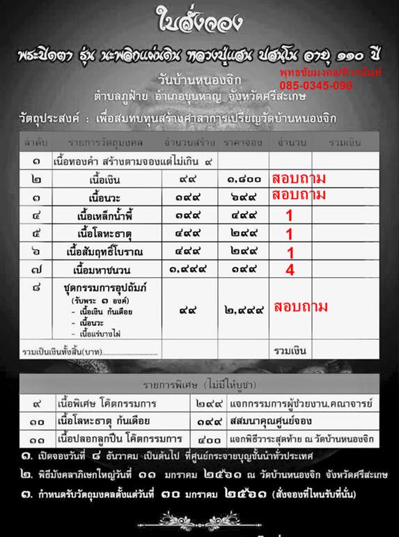 กำหนดรับวัตถุมงคลวันที่ 30 ม.ค.61 เป็นต้นไป