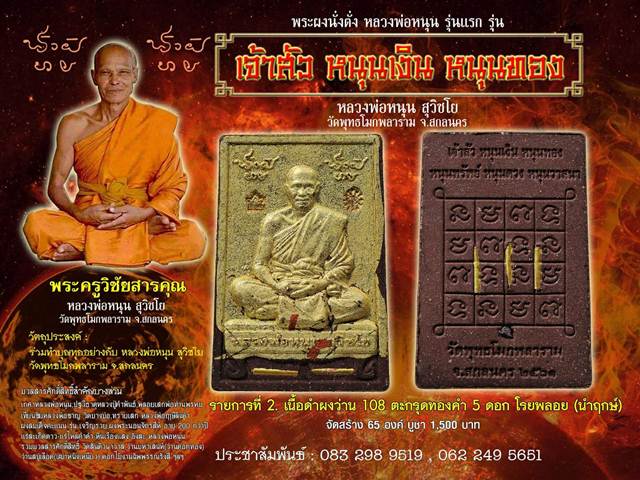 *** เปิดจอง//พระผงนั่งตั่งรุ่นแรก รุ่น"เจ้าสัวหนุนเงิน หนุนทอง" หลวงพ่อหนุน สุวิชโย วัดพุทธโมกพลาราม จ.สกลนคร
