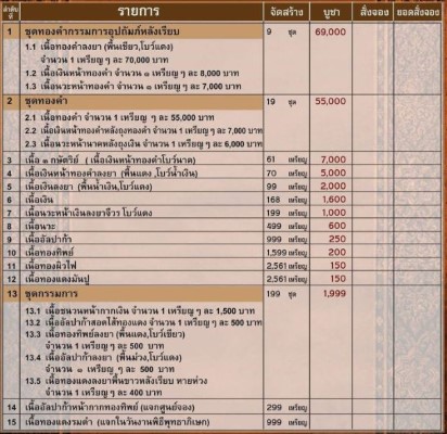 วัตถุประสงค์: เพื่อนำรายได้ถวายหลวงพ่อทองไว้บำรุงพระพุทธศาสนา