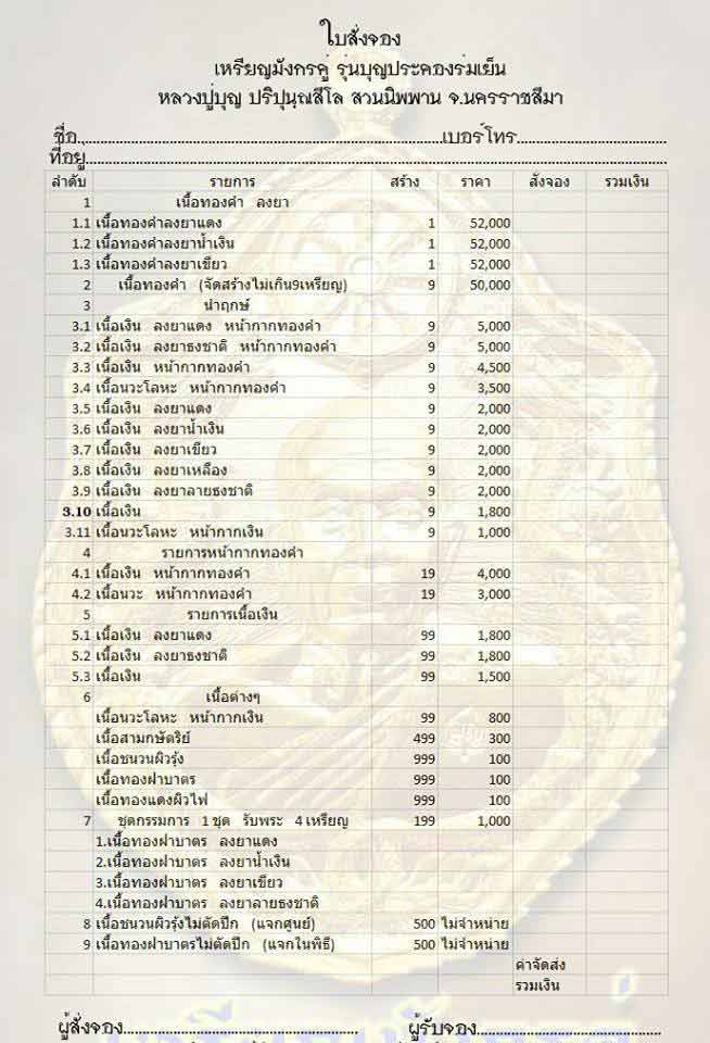 ชุดกรรมการ รับพระ 4 เหรียญ จอง 1,000 บาท มี 1 ชุด