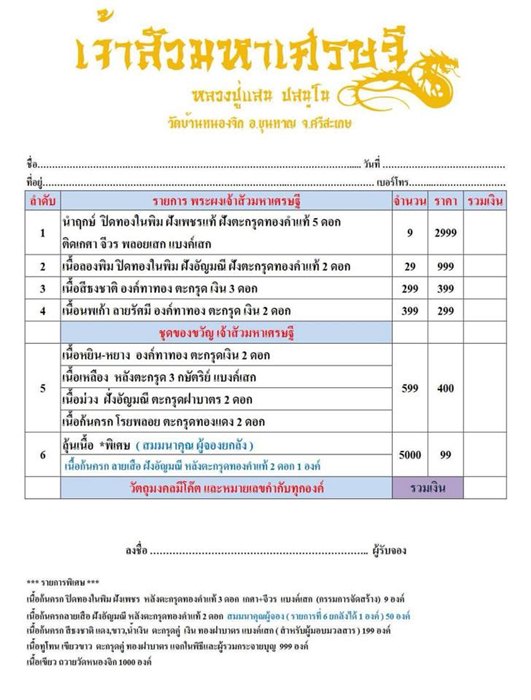 รายการ 6 ลุ้นเนื้อ ราคา 299 บาท มียอด 50 องค์ |