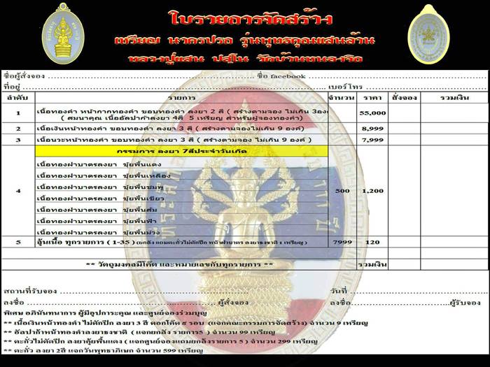 รายการ 4. ชุดกรรมการลงยา 7 สี สีประจำวันเกิด (รับพระ 7 เหรียญ) ราคาจอง 1,200.-บาท มียอด= 10