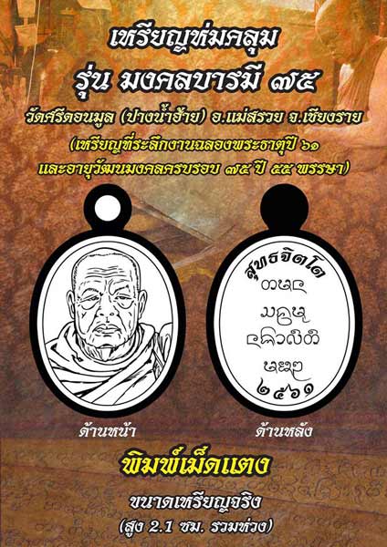 เปิดจอง เหรียญ มงคลบารมี 75 ครูบาอินสม วัดศรีดอนมูล (ปางน้ำฮ้าย)เทพเจ้าแห่งขุนเขา เกจิผู้เป็นตำนานแห่งยุคนี้ ของ จ.เชียงราย อันดับ 1 ของพื้นที่ ส่งต่อความแรงทุกอณู