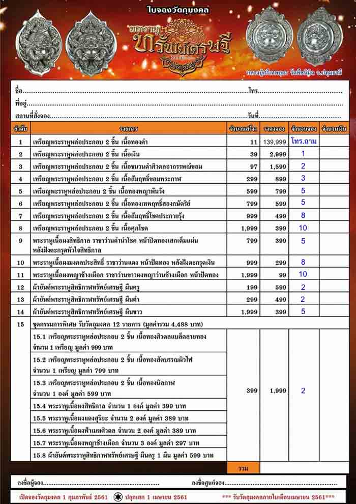ราคาจองทุกรายการ ตามใบจอง