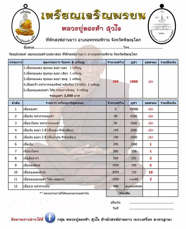 วัตถุประสงค์...สมทบทุนสร้างเสนาสนะ ที่พักสงฆ์ย่านยาว อ.พรหมพิราม จ.พิษณุโลก