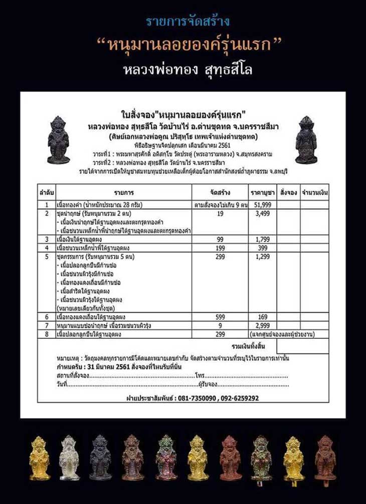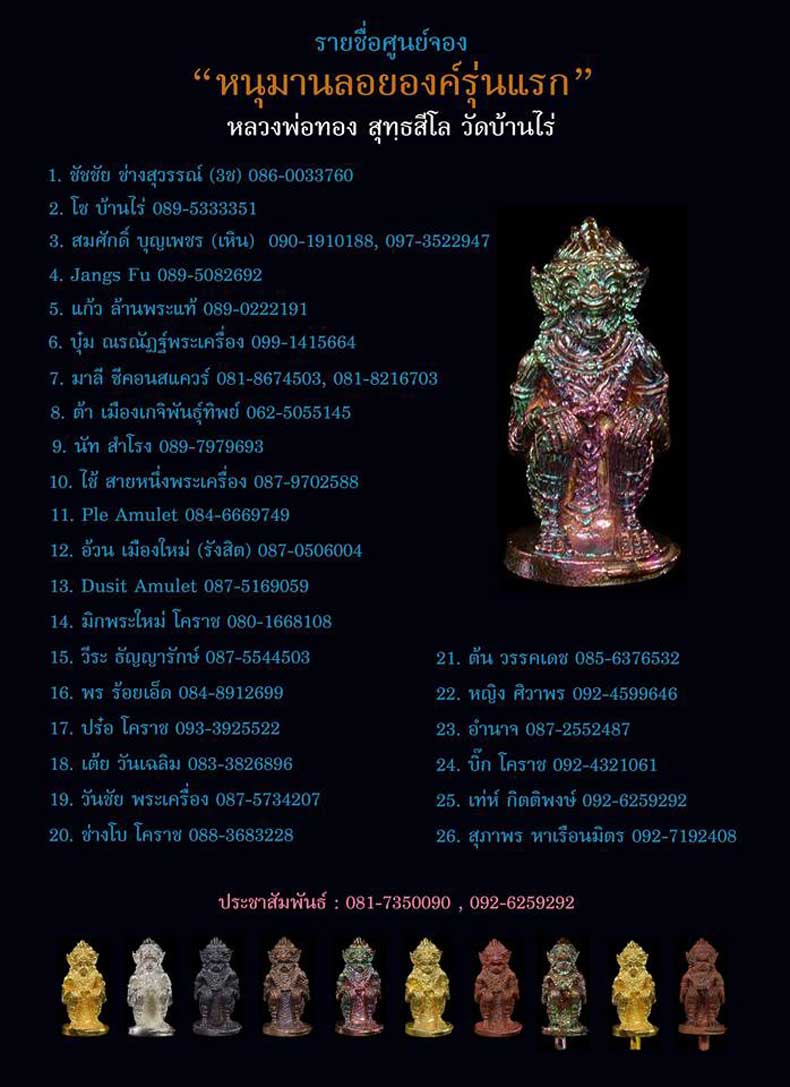 รูปหล่อหนุมานลอยองค์ หลวงพ่อทอง สุทฺธสีโล วัดบ้านไร่ จ.นครราชสีมา