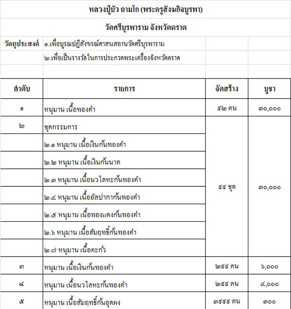 รายการที่ ๑.หนุมาน เนื้อทองคำ จำนวน 1 ตน /ราคาตนละ 39,500 บาท