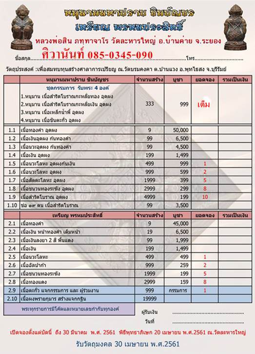 กำหนดรับวัตถุมงคลตั้งแต่ 30 เม.ย 61