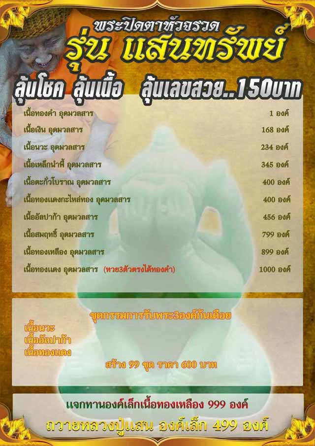 | หัวข้อกระทู้ : เปิดจอง พระปิดตาหัวจรวด รุ่นแสนทรัพย์ หลวงปู่แสน วัดบ้านหนองจิก *รายการลุ้นเนื้อเพียง 150 บาท/องค์* |