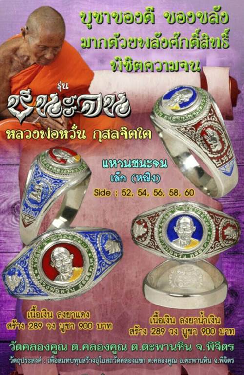 เปิดจองแหวนชนะจน และหมูมหาลาภ เสกโดยหลวงพ่อหวั่น วัดคลองคูณ จ.พิจิตร