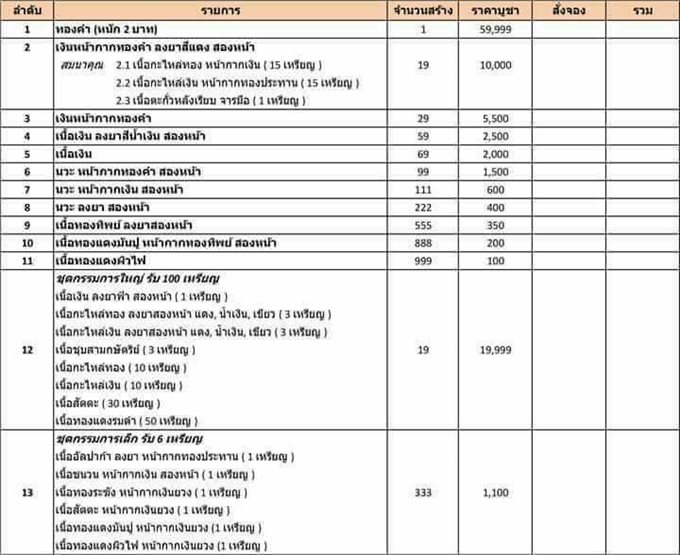 เปิดจองราคาจองตามใบทุกรายการ