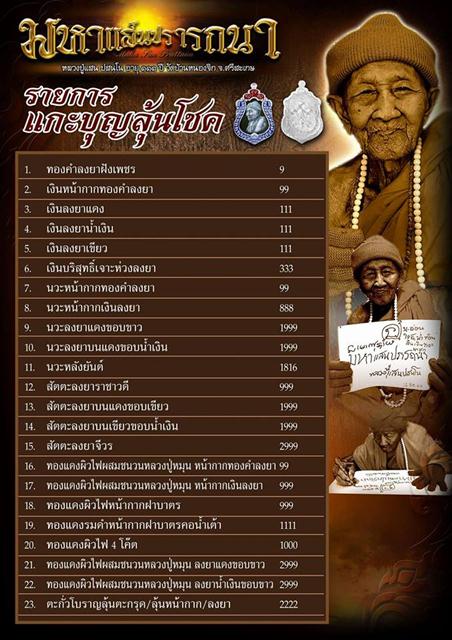 สนใจสั่งจองได้ที่ นายจักรกฤษณ์ เค้าทอง บัญชีธนาคารกรุงเทพ สาขาโลตัสขุขันธ์ 788-006042-6 โทร.088-0444744 รายละเอียดการปิดจองและวันพุทธาภิเษกจะแจ้งให้ทราบอีกทีในภายหลังครับ |