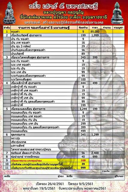 รายการ 6.ชุดกรรมการ(รับพระ 4 องค์) ราคาจอง 1,299-บาท มียอด = 2