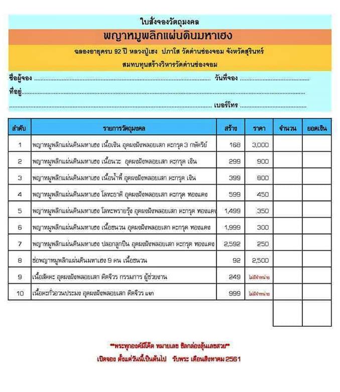 *** เปิดจอง//พญาหมูพลิกแผ่นดิน "มหาเฮง" หลวงปู่เฮง ปภาโส วัดด่านช่องจอม จ.สุรินทร์