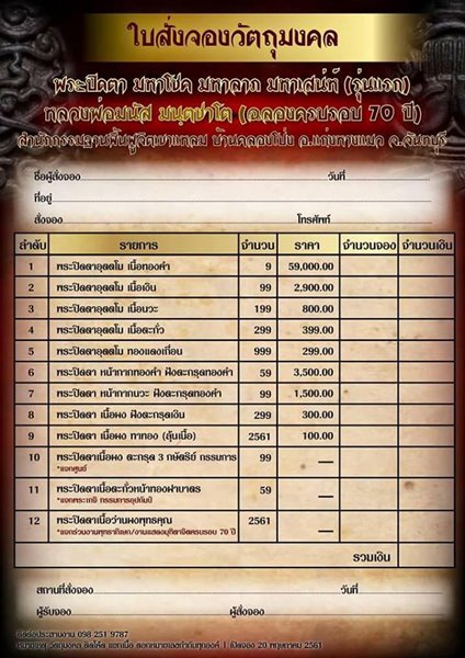 รายการที่ 3 พระปิดตาอุตตโม เนื้อตะกั่ว 1 องค์ละ 400 บ.