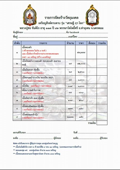 รายการที่เปิดจอง วัตถุมงคล เสือคาบดาบ เศรษฐี ฦา โลก หลวงปู่สอ ขันติโก พระอริยสงฆ์ 6 แผ่นดิน อายุ 113 ปี