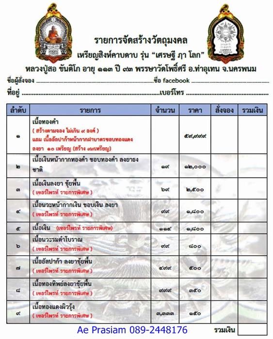 *** มีรายการเปิดจอง ดังนี้ครับ