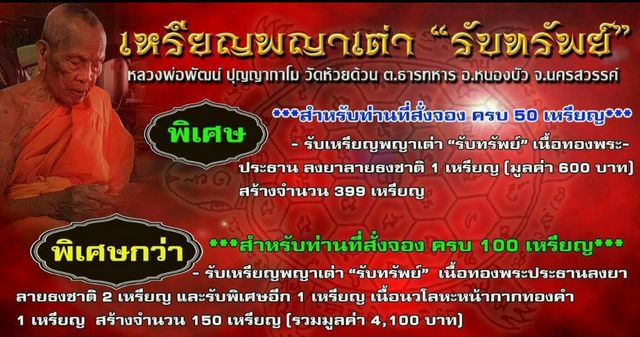 | หัวข้อกระทู้ : เปิดจอง..เหรียญพญาเต่า "รับทรัพย์" หลวงปู่พัฒน์ ปัญญกาโม วัดห้วยด้วน จ.นครสวรรค์ |