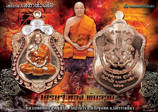วัตถุมงคล >> เหรียญเสมาหัวเสือ รุ่น เศรษฐีทองพันล้าน หลวงพ่อทอง วัดบ้านไร่