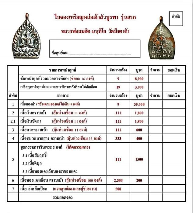 รายการ 4.เนื้อชนวนมวลสาร คราบเบ้า ราคาจอง 400.-บาท มียอด = 1
