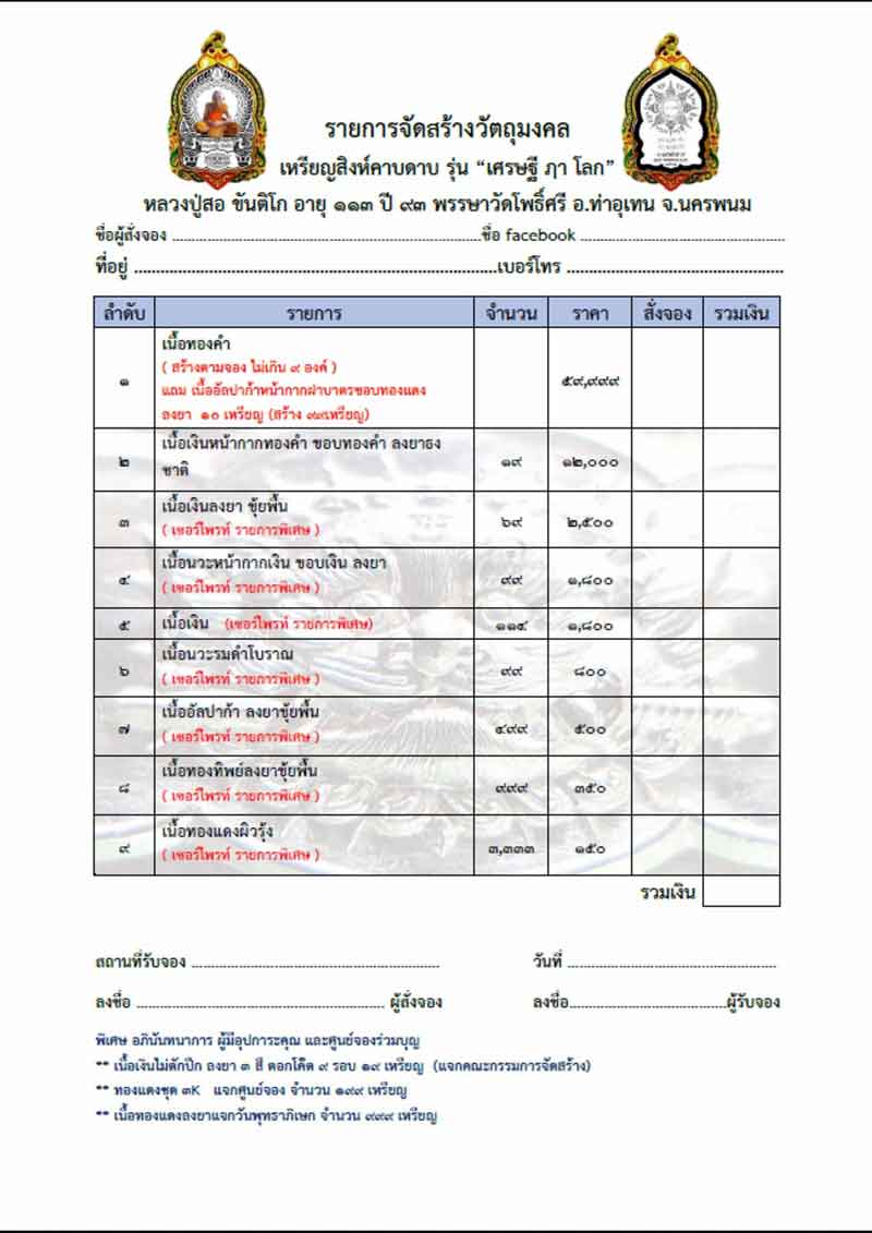 - ค่าส่ง 3 องค์ขึ้นไป /100.-