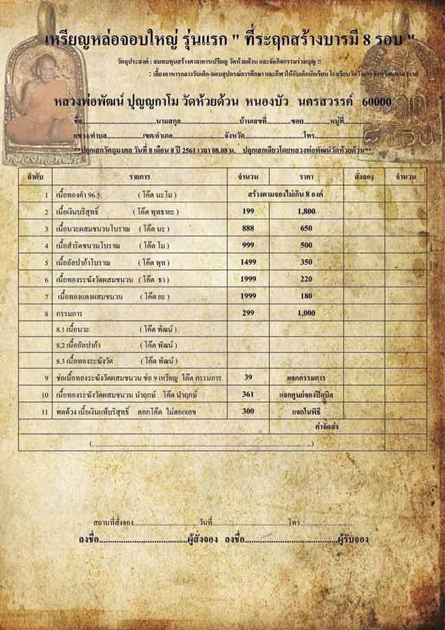 หลวงพ่อพัฒน์ปลุกเสกเดี่ยว วันที่ ๘ เดือน ๘ เวลา ๘ นาฬิกา ๘ นาที ในงานปลุกเสก กรรมการแจก พดด้วงเงินแท้ตอกโค้ตแช่น้ำมนต์หลวงพ่อ ฟรีๆเพียงท่านละ๑เม็ดเท่านั้น (คนโบราณ กล่าวไว้ว่า ใครพกพดด้วงติดตัว แคล้วคาดปลอดภัย คงกะพัน) ไม่ต้องรอข้ามเดือน จองวันนี้ รับพระหลังวันที่ ๙ สิงหาคมเป็นต้นไป
