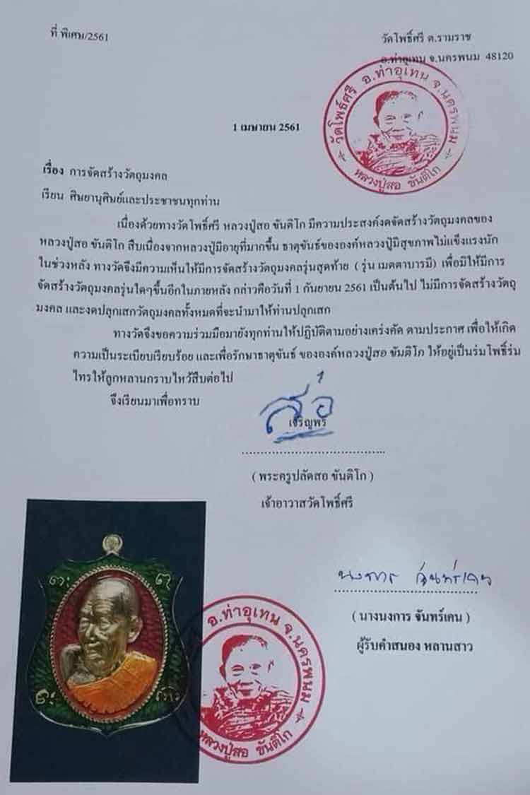 เปิดจอง$$$ เหรียญเมตตาบารมีรุ่นสุดท้าย (ทีมสร้างเดียวกับรุ่นเเรก) หลวงปู่สอ วัดโพธิ์ศรี