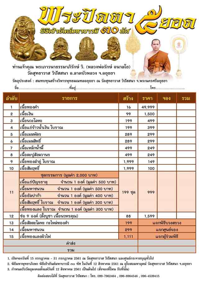 10.เนื้อสัมฤทธิ์ มี 10 องค์ๆละ 100 บาท