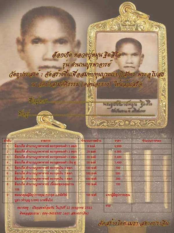 ท่านใดสนใจ เช่าวัตถุมงคล รุ่น ตำนานบูรพาจารย์ ติดต่อสอบถามศูนย์จองสะพานบุญได้เลยครับ หลังเสกวาระที่ 3 ชำระเงินเรียบร้อยรอรับวัตถุมงคลได้เลยครับ