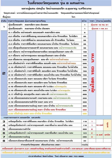 รายการ.ลุ้นโชค (ลุ้น 22 รายการ) ราคาจอง 150.-บาท มียอด = 38