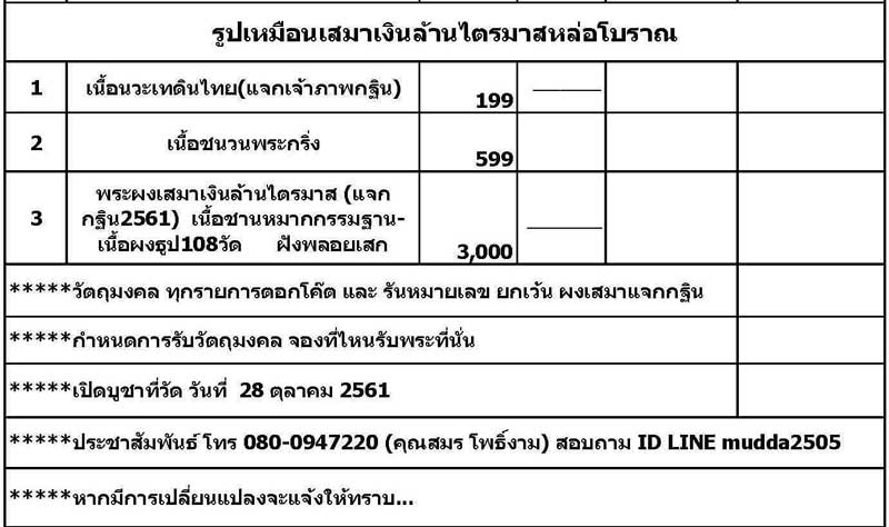 2.พระรูปเหมือนเสมาไตรมาสเงินล้าน( กฐิน๒๕๖๑ ) จะคละเนื้อ ไม่สามารถเลือกได้