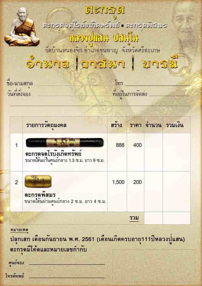 🔥เปิดจองแล้ว. ตะกรุดหลวงปู่แสน 111 ปี🔥
