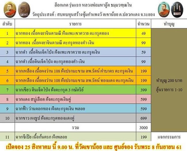 (**รับพระหลังวันที่ 8 กันยายน 2561)