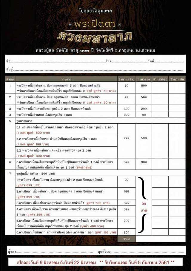 7.รายการลุ้นเนื้อ มี 20 องค์ๆละ 99 บาท