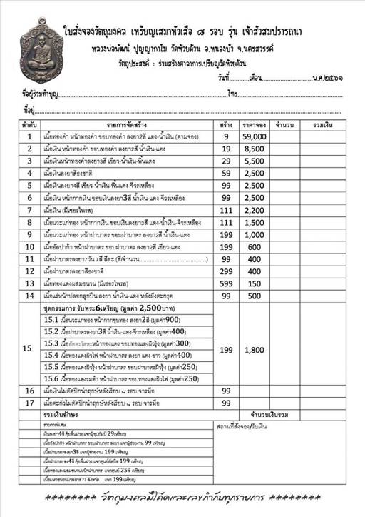 รายการ 15.ชุดกรรมการ (รับพระ 6 เหรียญ) ราคาจอง 1,800.-บาท มียอด= 5