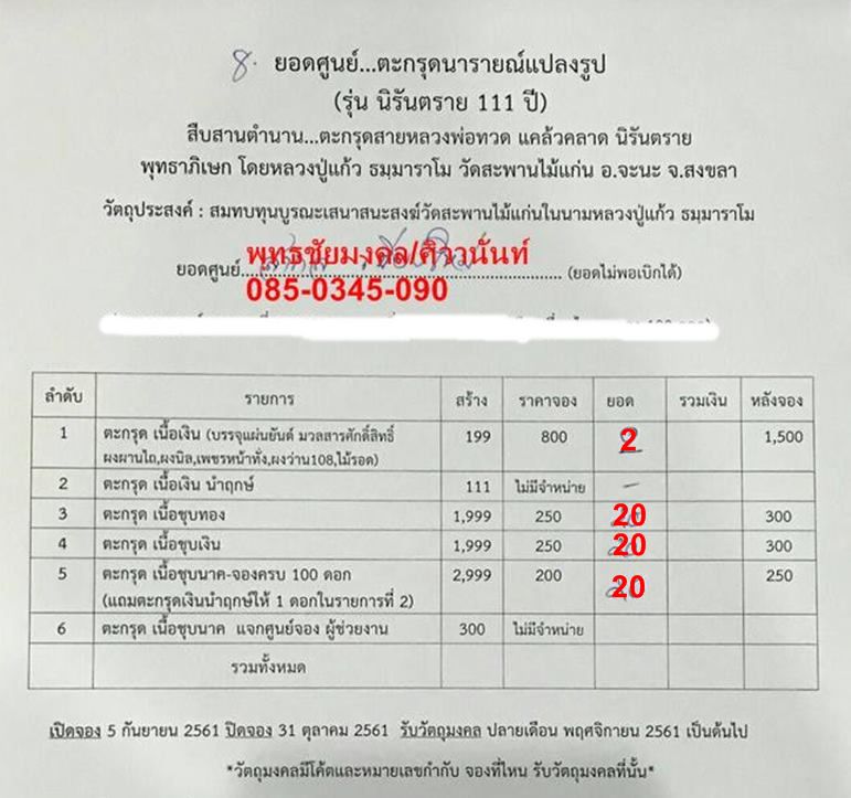 รับวัตถุมงคล ปลายเดือนพศจิกายน 61 เป็นต้นไป