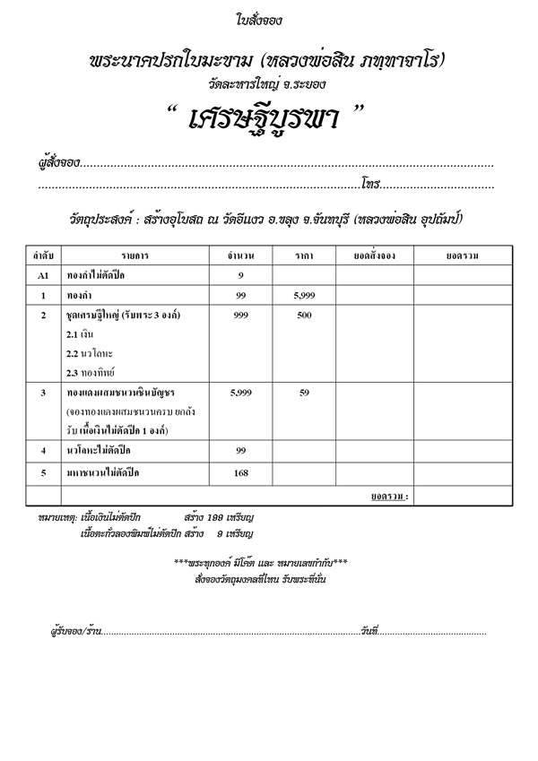 2.ชุดเศรษฐีใหญ่(รับพระสามองค์) จอง 500 บาท มี 10 ชุด