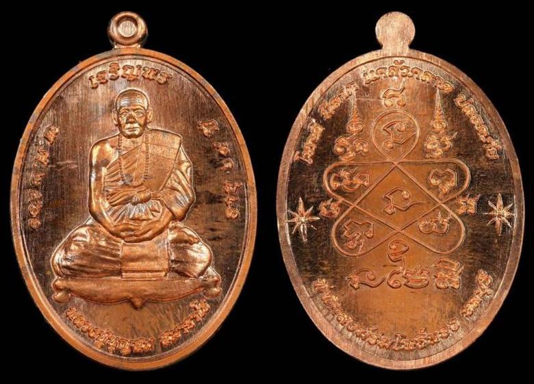 ((กรณีสั่งจองยกลัง 100 เหรียญ แถมเนื้อนวะ ๙ รอบ หน้าชุบทอง 1 เหรียญ)